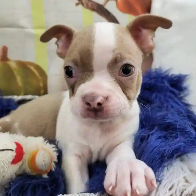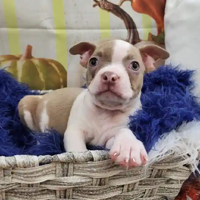 The Boston Terrier is a lively little companion recognized by his tight tuxedo jacket, sporty but compact body, and the friendly glow in his big, round eyes. His impeccable manners have earned him the nickname “The American Gentleman.”